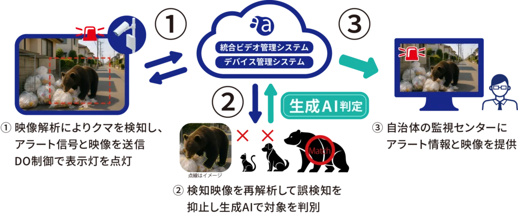 - AIアプリケーションパッケージによるエッジAIの検知精度が不十分な場合、クラウド側でさらに生成AIによる解析を行うことにより誤検知を減らし精度を高めることが可能になります