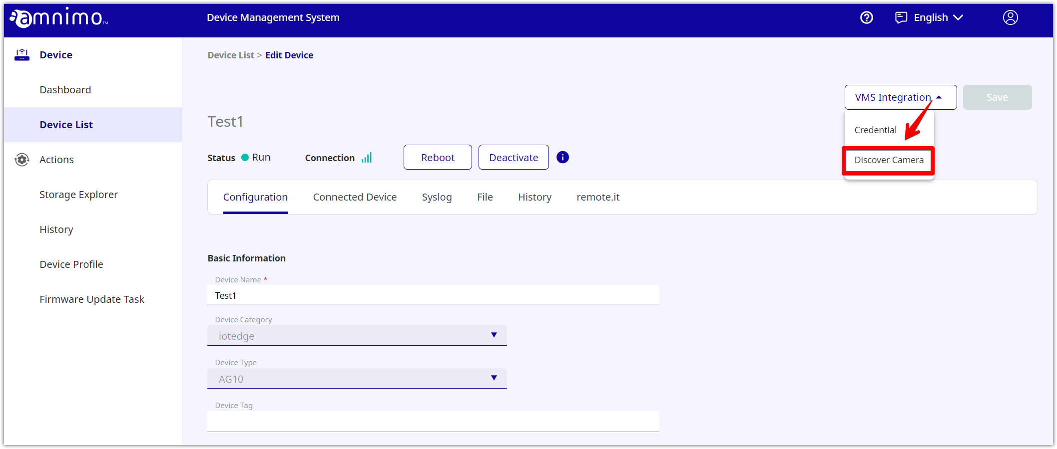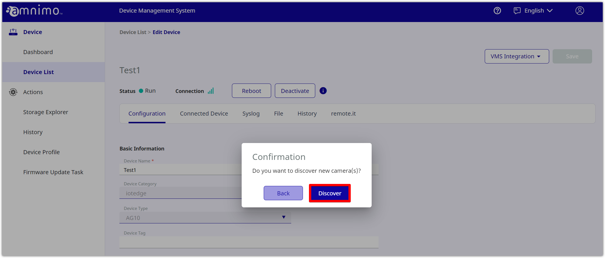 Click the [ VMS Integration ] button, and select [ Discover Camera ].