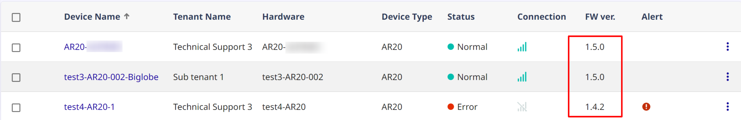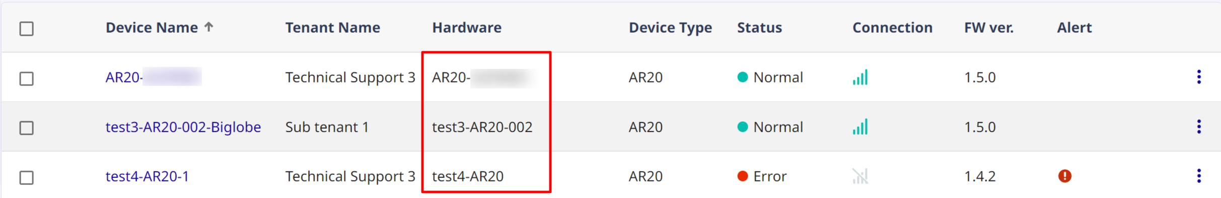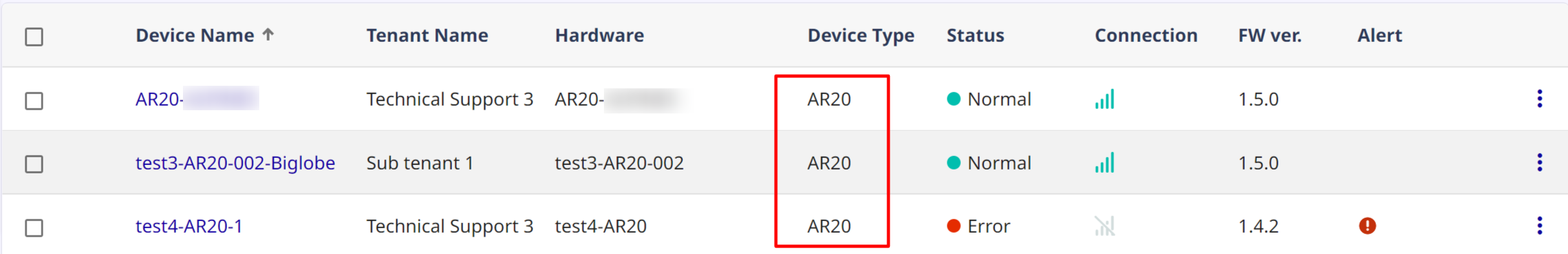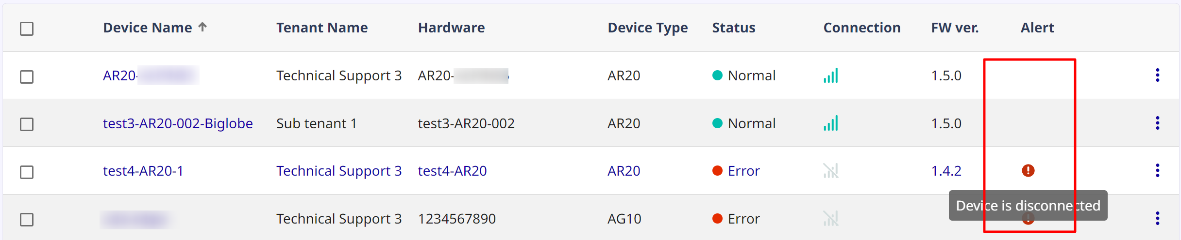 On the [ Device List ], the status of each of the devices belonging to the tenant can be listed as shown in the figure below.
