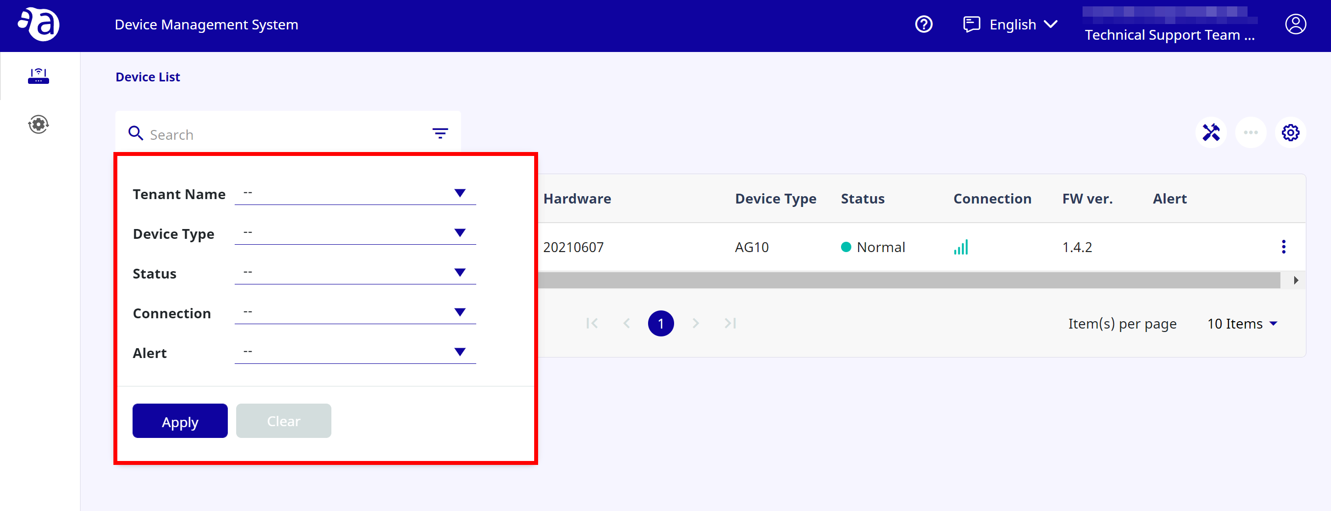If multiple conditions are set for the [ Device Type ], [ Status ], [ Connection ], and [ Alert ] fields, an OR search will be performed.