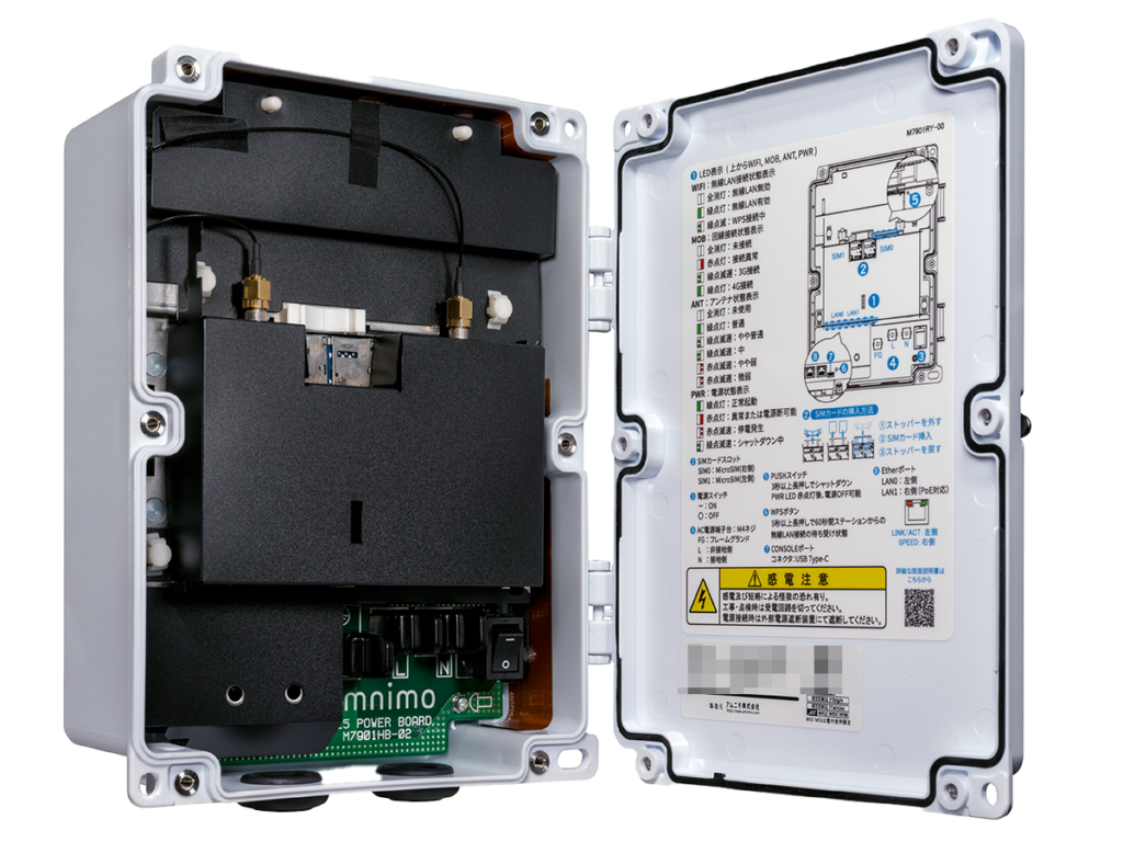 アムニモが提供する映像用装置は、屋外で入手しやすい100V~240Vの交流電源で動作します。また、カメラにPoEで電源を供給し、映像を取り込んで録画を行い、LTE経由で遠隔からの映像の閲覧・取得を可能とするための各種機能を1台に実装。カメラどアムニモの装置だけで現地のシステムが構成可能です。