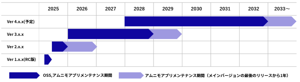 - LTSの期間終了後の約 1 年間はアムニモのアプリ側のメンテナンスを提供します。