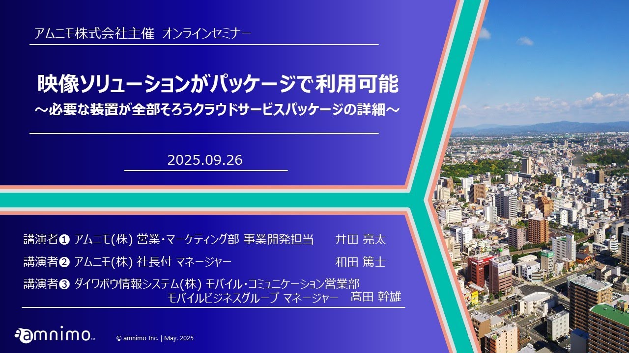 2025/9/26 【オンラインセミナー】 映像ソリューションがパッケージで利用可能! ~必要な装置が全部そろうクラウドサービスパッケージの詳細~